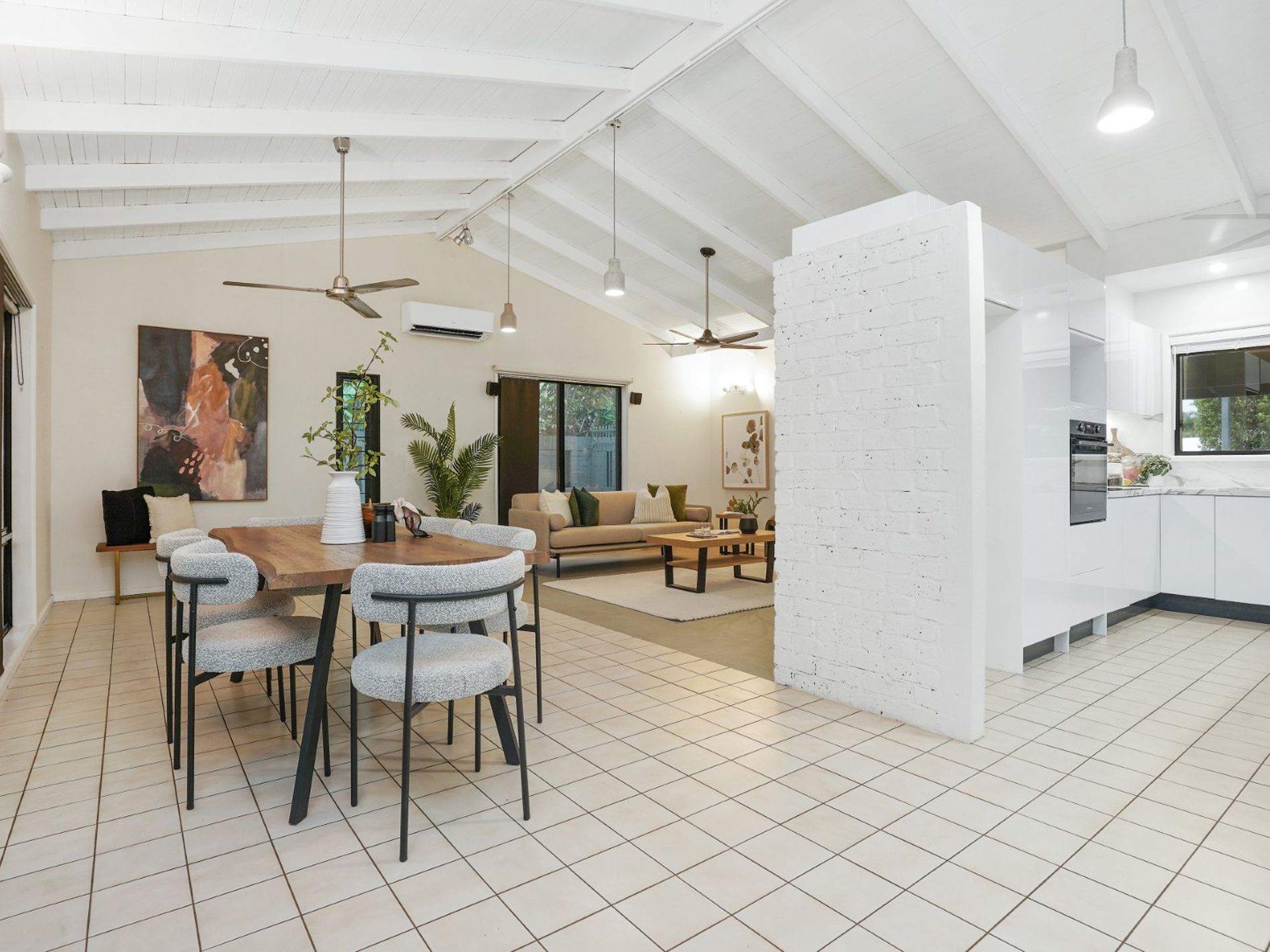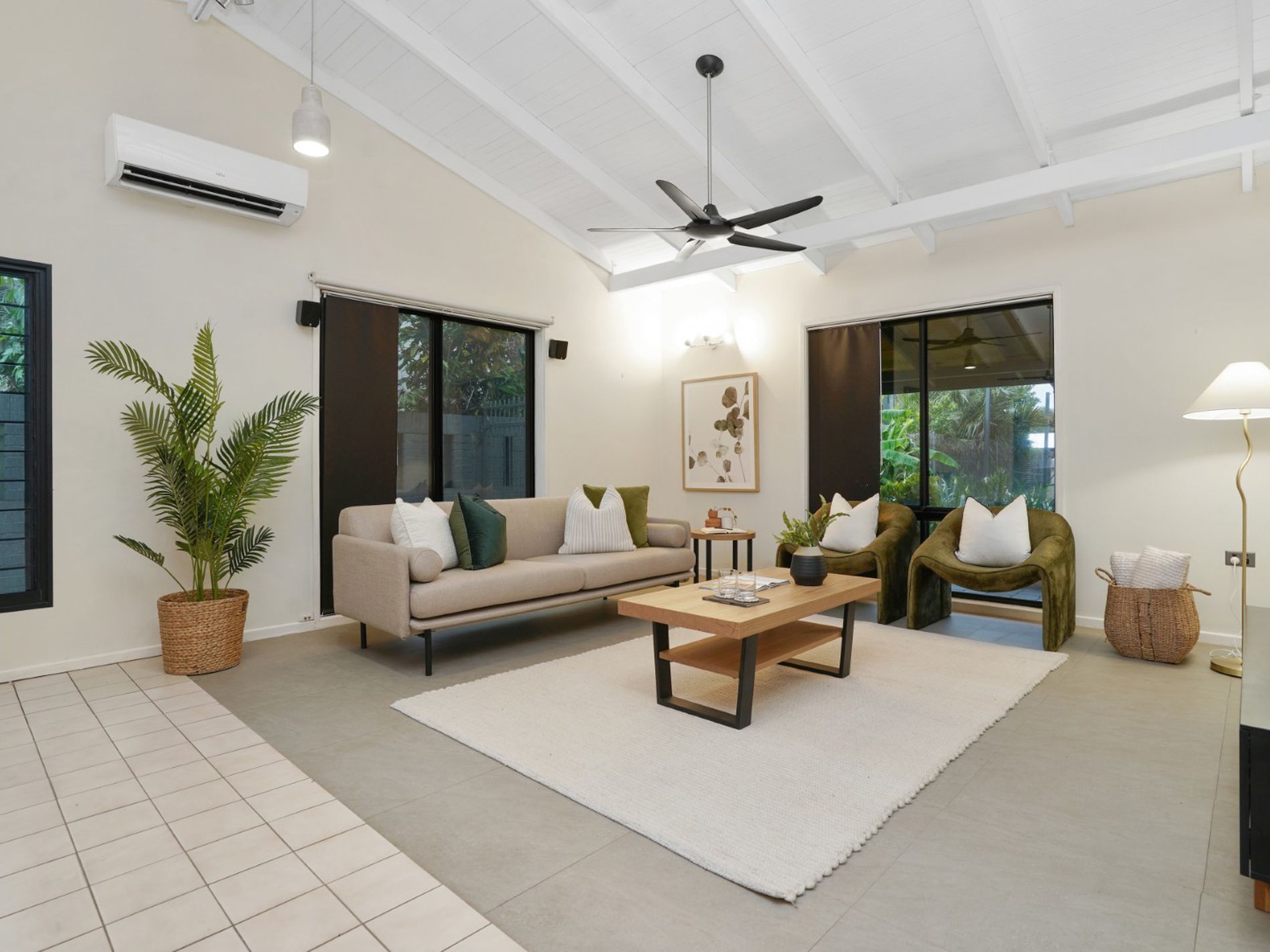 Step inside and the sense of space is immediate. Soaring vaulted ceilings and crisp white interiors create a light, airy feel, while front-to-back openings allow beautiful cross breezes throughout.
