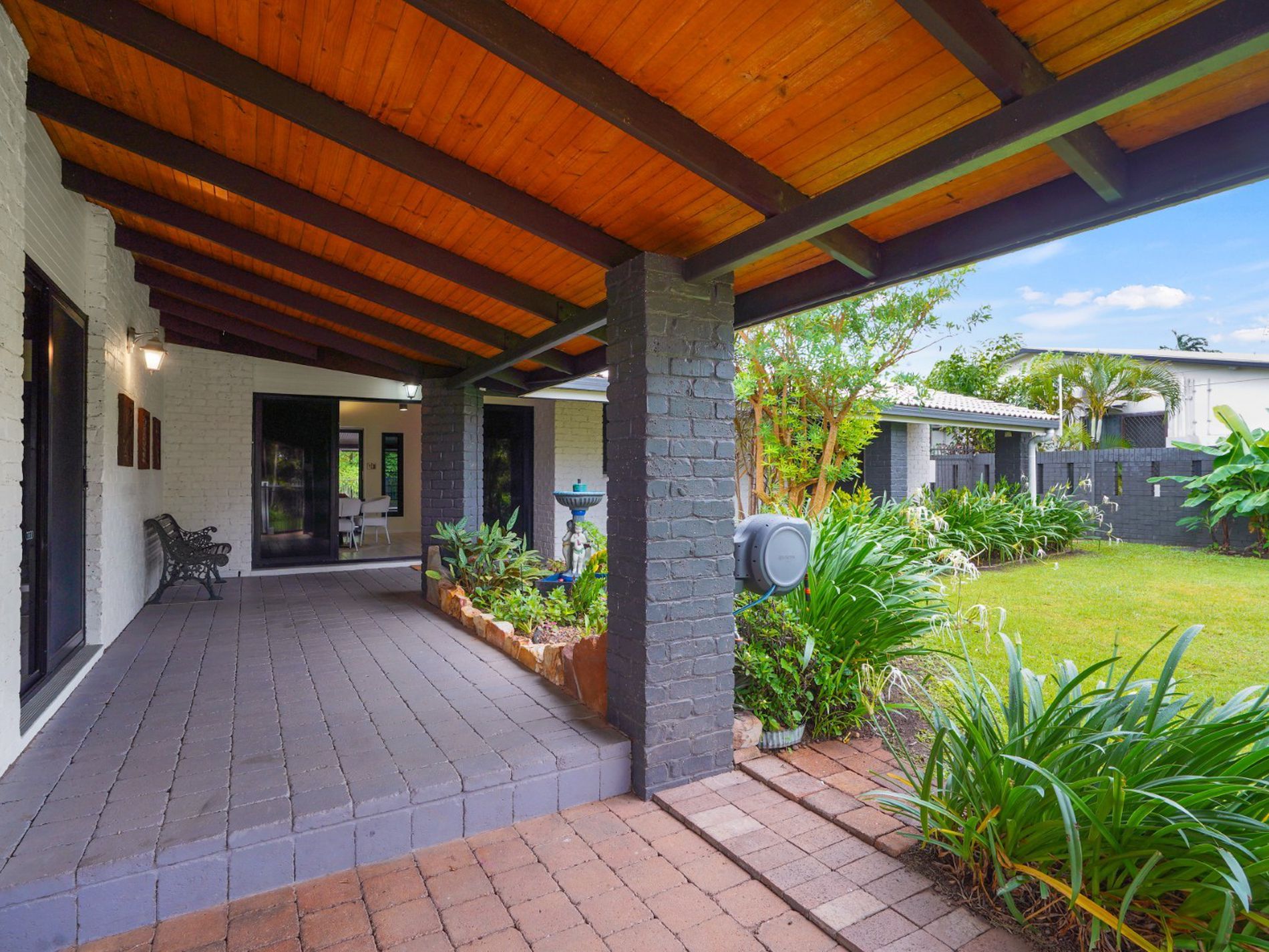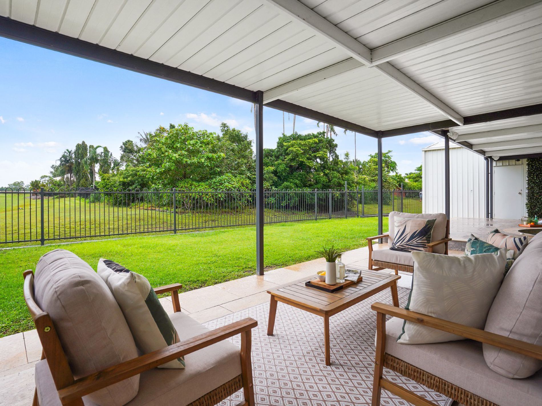 Outdoors is where this property truly shines. The expansive covered rear verandah overlooks the greens, with nothing between you and the leafy sweep of the course.