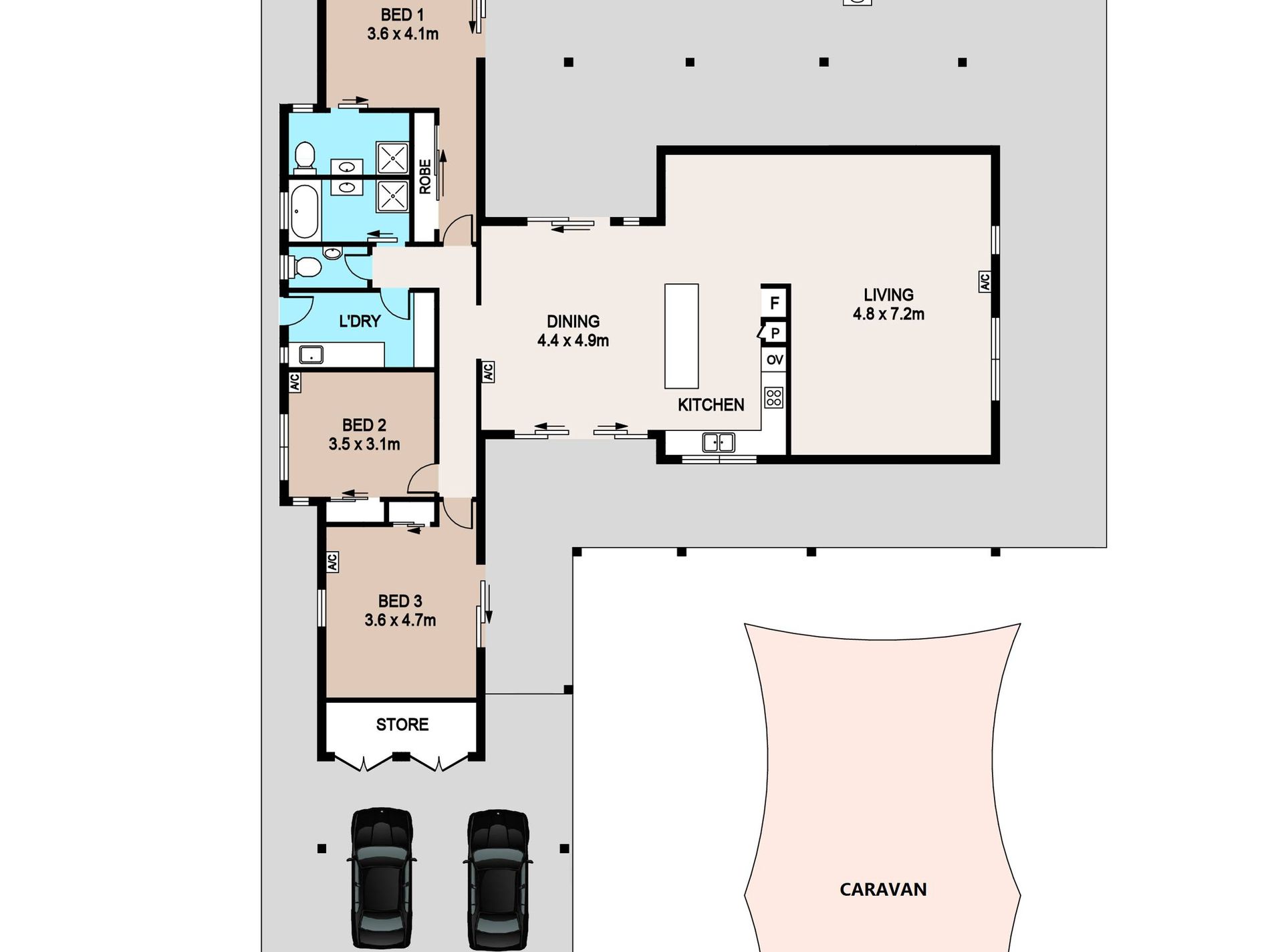* Master with built-in robes, elegant ensuite and sliding doors to alfresco